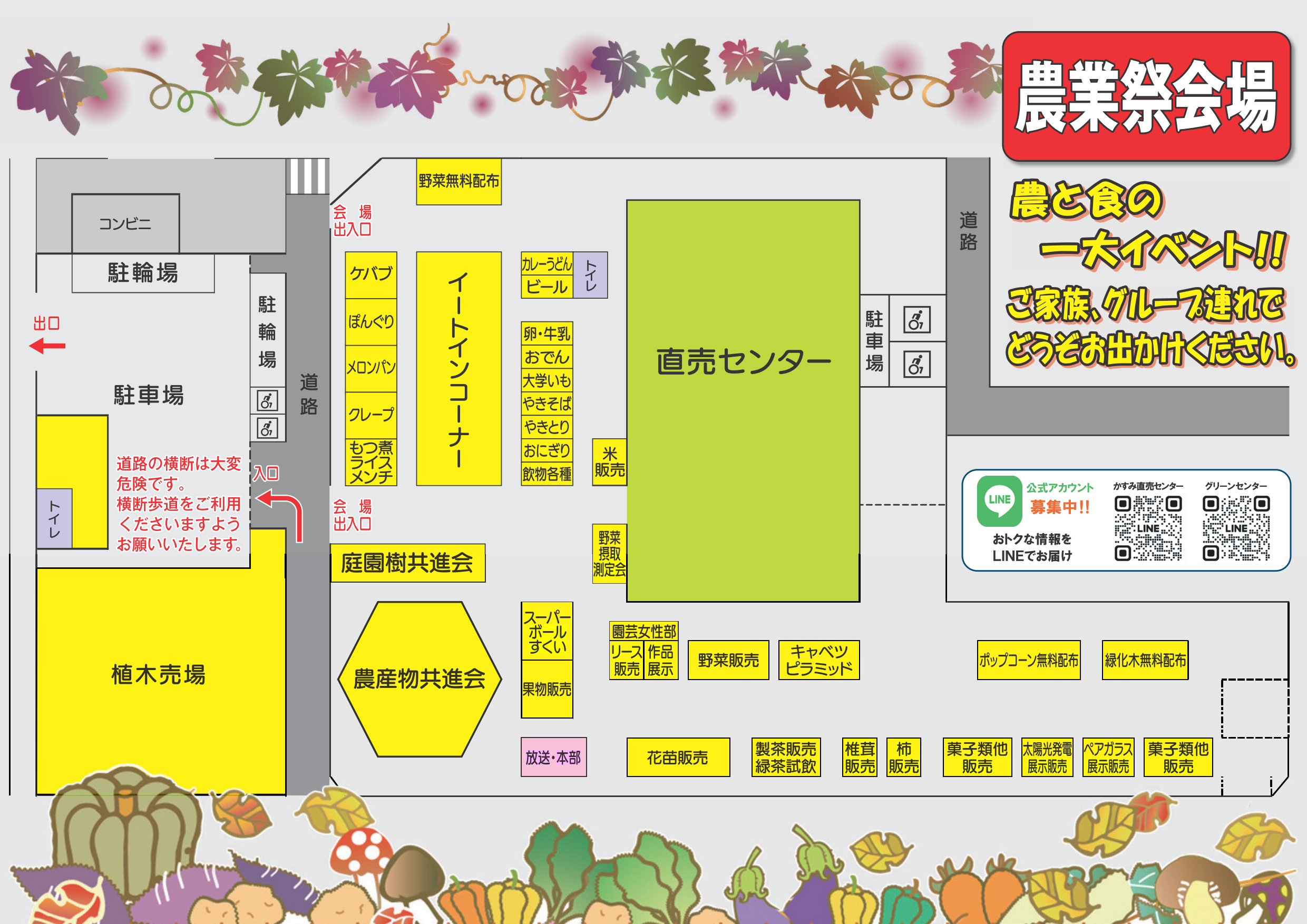 地元農家の旬野菜、限定品の販売会、美味しい野菜を使用した飲食ブースなど、盛りだくさんの【 農業祭 】となっています。