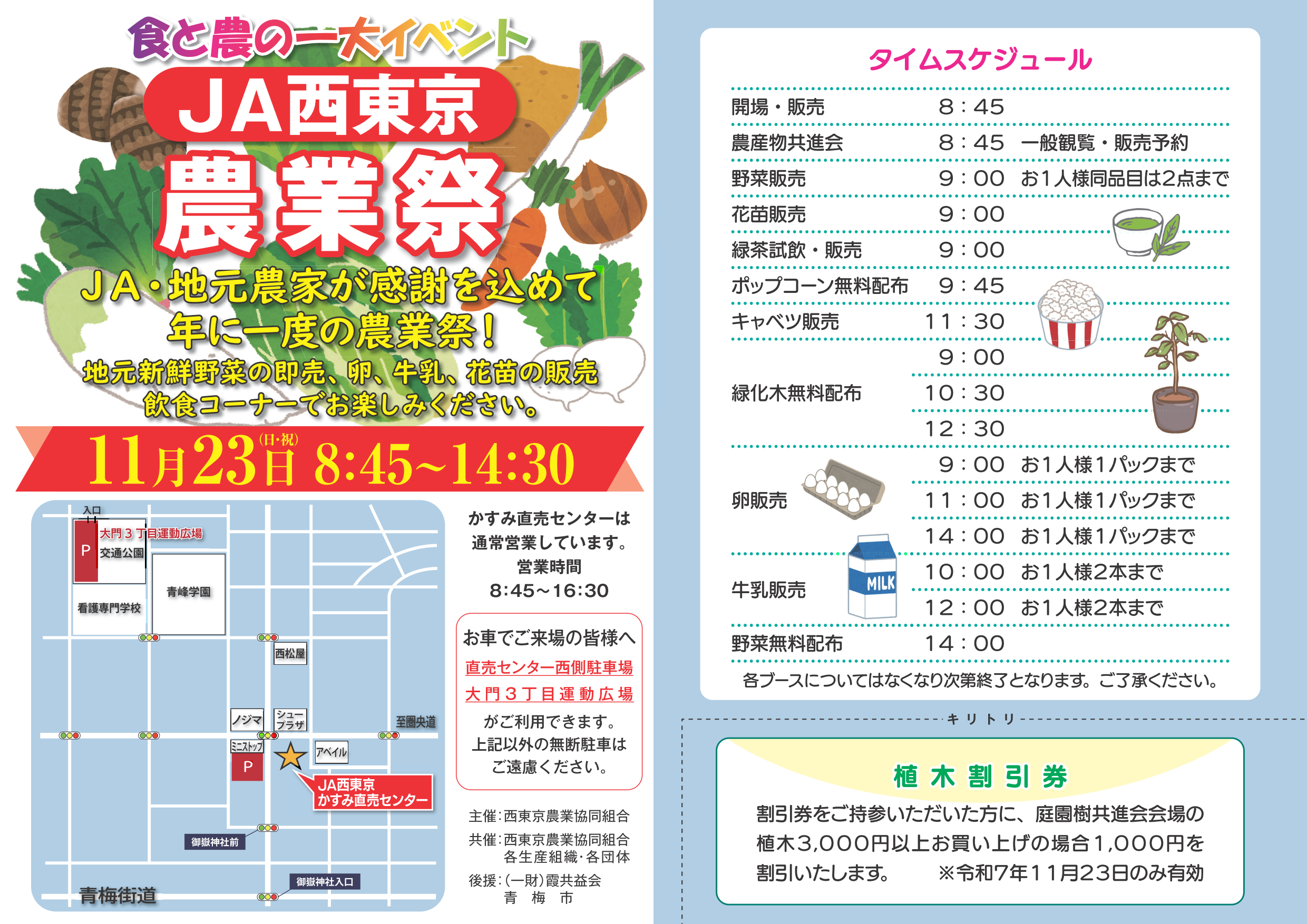会場:JA西東京かすみ直売センター(東京都青梅市新町2-28-19)