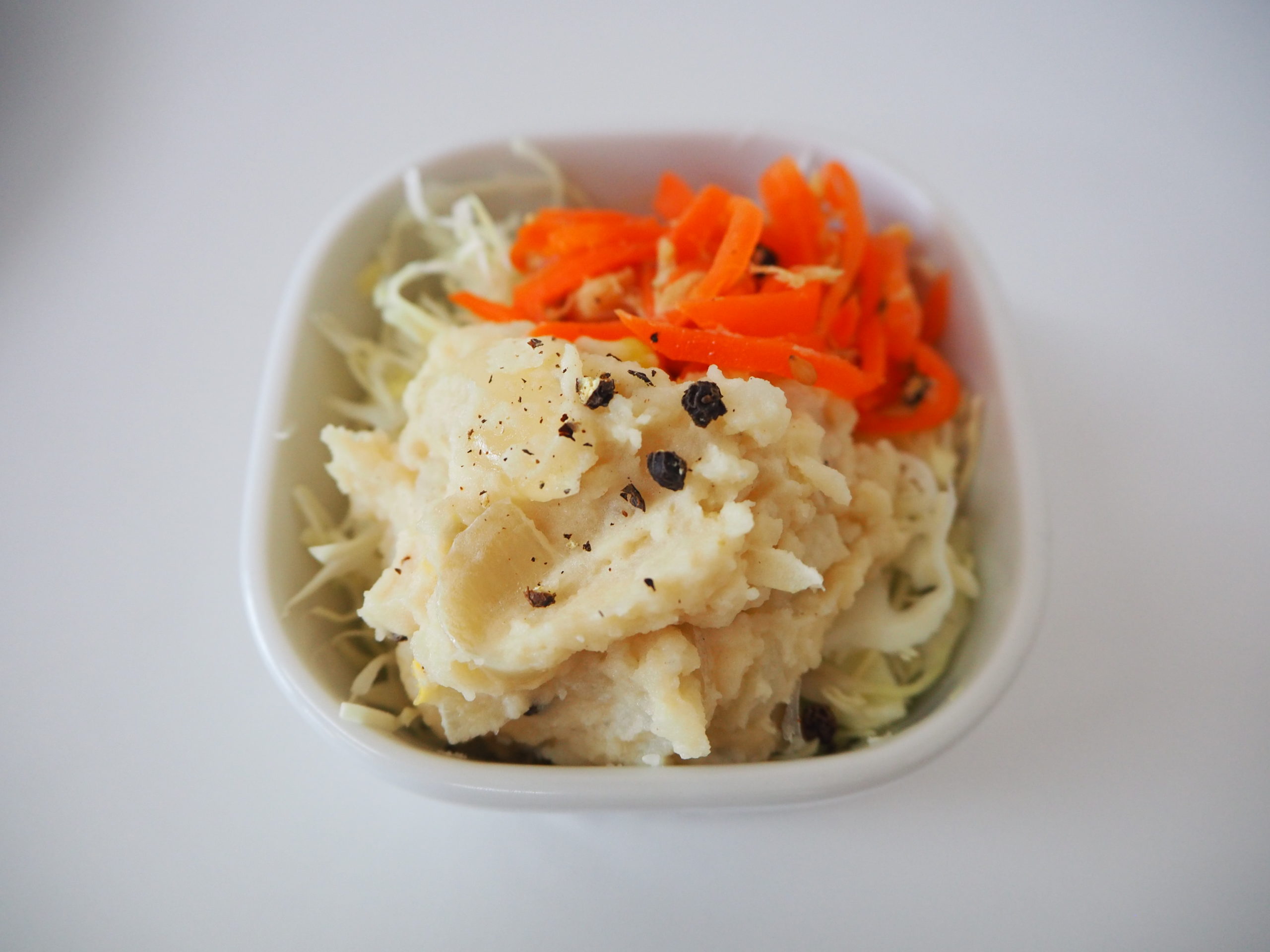 ランチプレートに付いているサラダは、ベーグルにも使用されているお豆腐屋さんのおからを使用した「おからサラダ」になっています。ポテトサラダのようにマヨネーズで味付けをされており、なめらかな食感で、しっとり食べやすく、とてもヘルシーなサラダです。